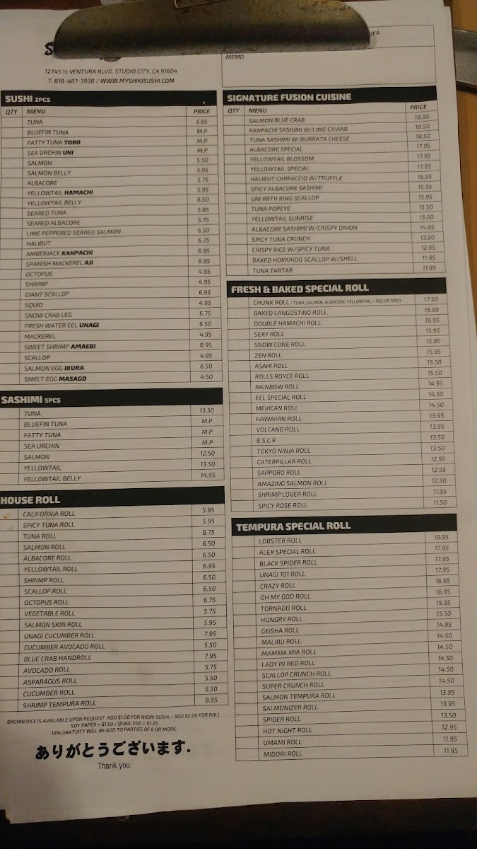 Welcome to SHIKI SUSHI, a delightful sushi restaurant nestled in the heart of Studio City. Located at 12745 A Ventura Blvd, this culinary gem specializes in authentic sushi that’s as visually stunning as it is delicious. Whether you’re a sushi aficionado or a curious newcomer, SHIKI SUSHI promises a dining experience you won't soon forget.
